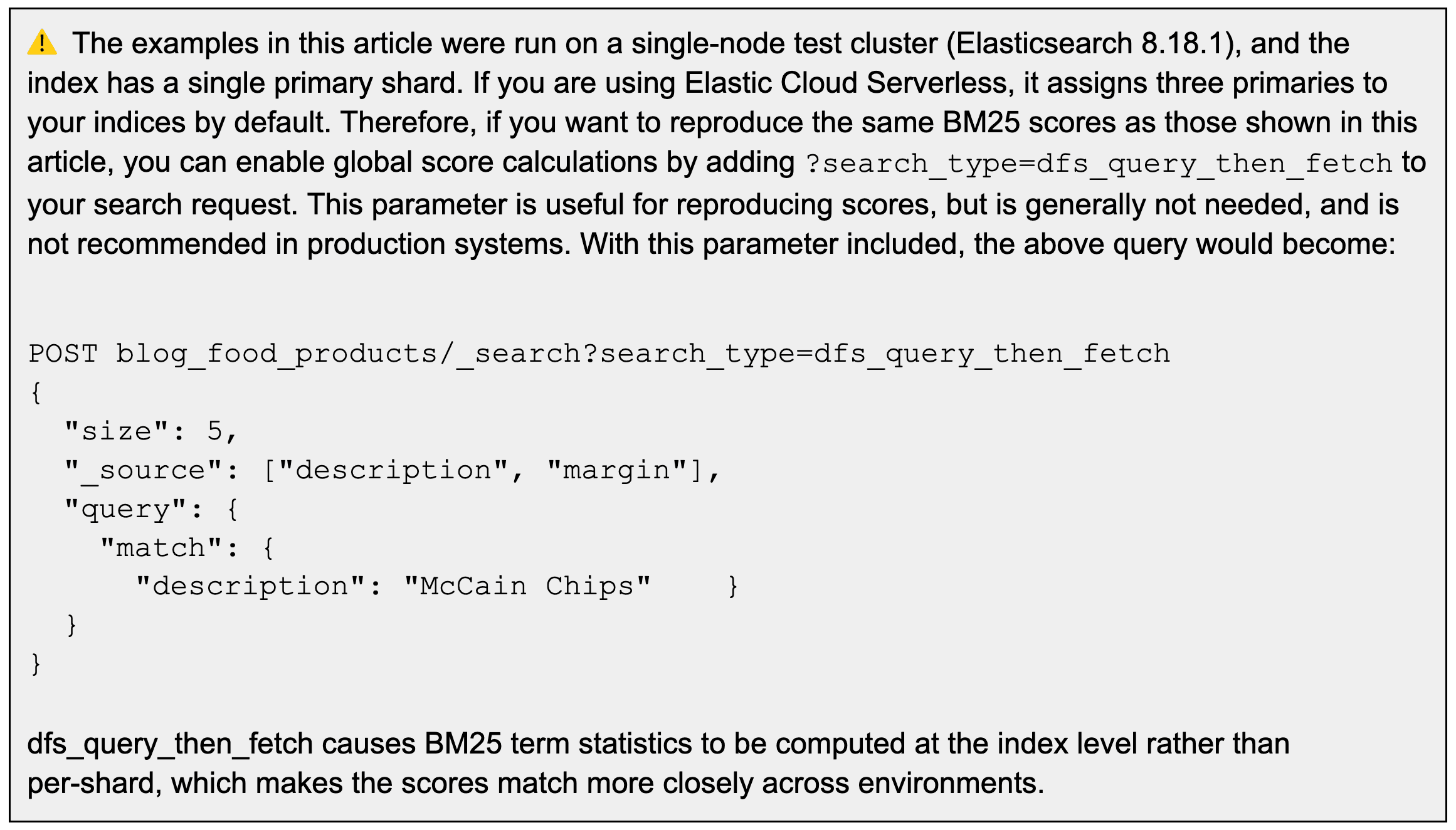 For this reason, the article uses function_score instead, because it provides explicit, controlled scoring that behaves consistently regardless of BM25 scale.