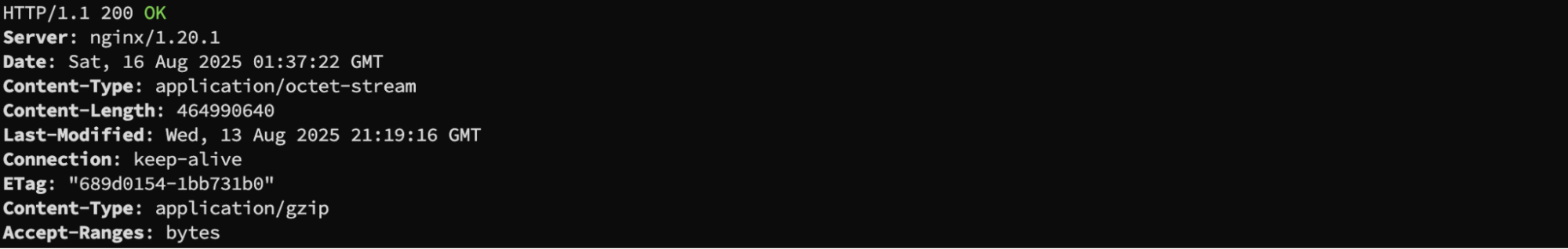curl -I http://your-server/downloads/endpoint/manifest/artifacts-8.18.5.zipShould show: ETag: "hexadecimal-value"