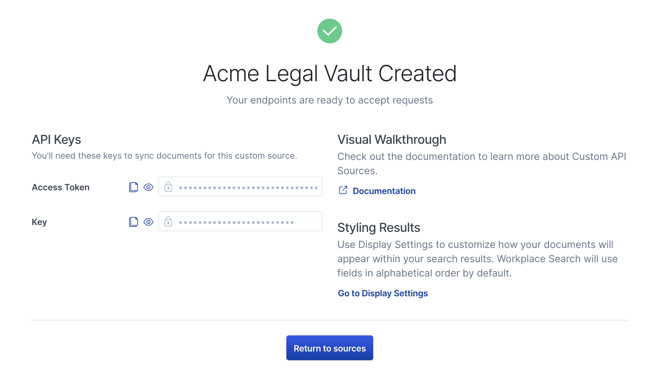 Step 1. From the Workplace Search administrative dashboard’s Sources area, locate the Custom Source you would like to configure, and click Details.