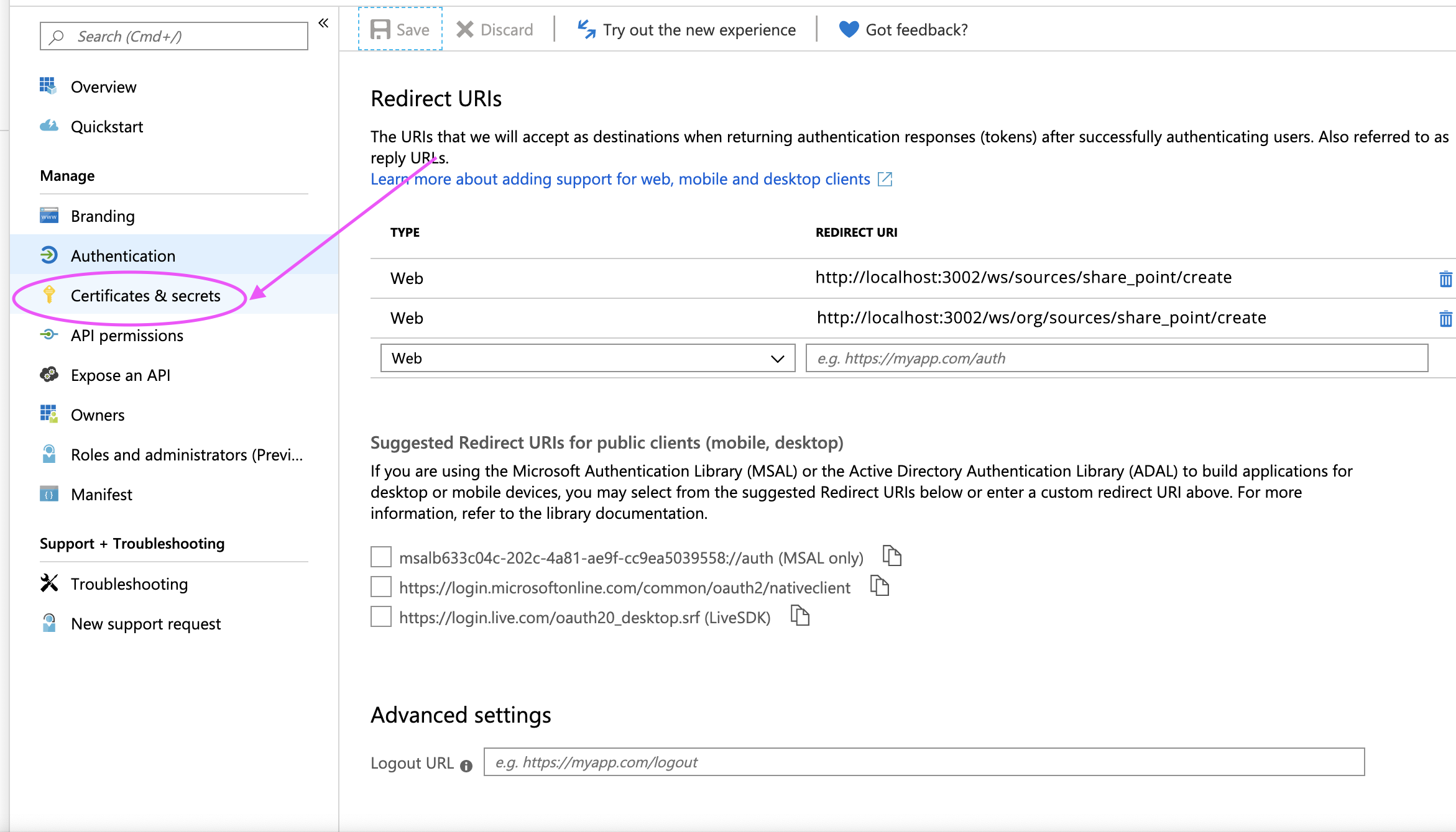 Step 8. Locate the Client Secret by navigating to Certificates & Secrets: