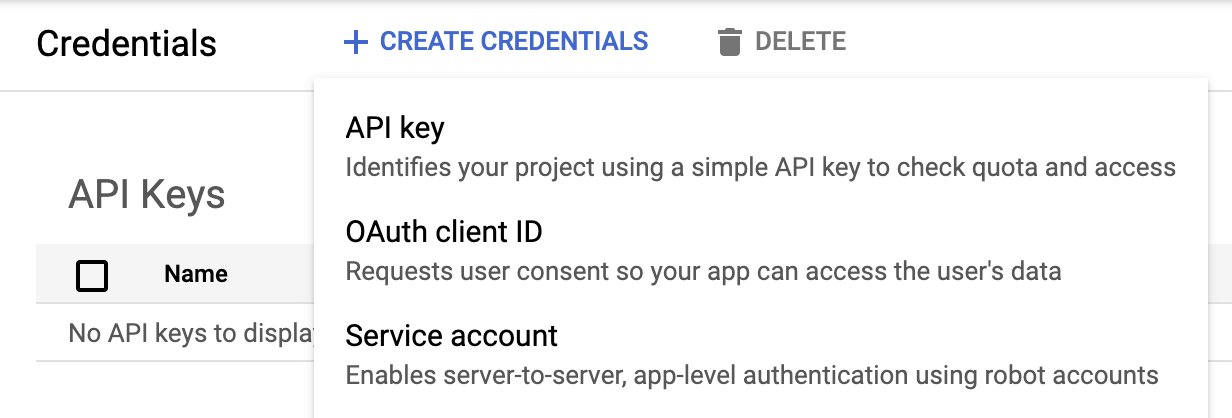 Step 5. You will be prompted to Create Credentials: