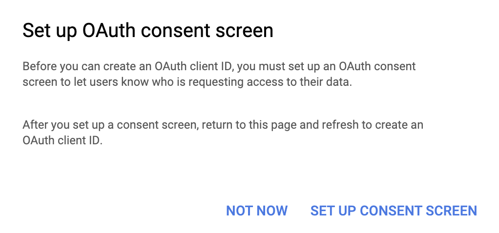 Step 7. Click What credentials do I need?, and select the Set up consent screen option: