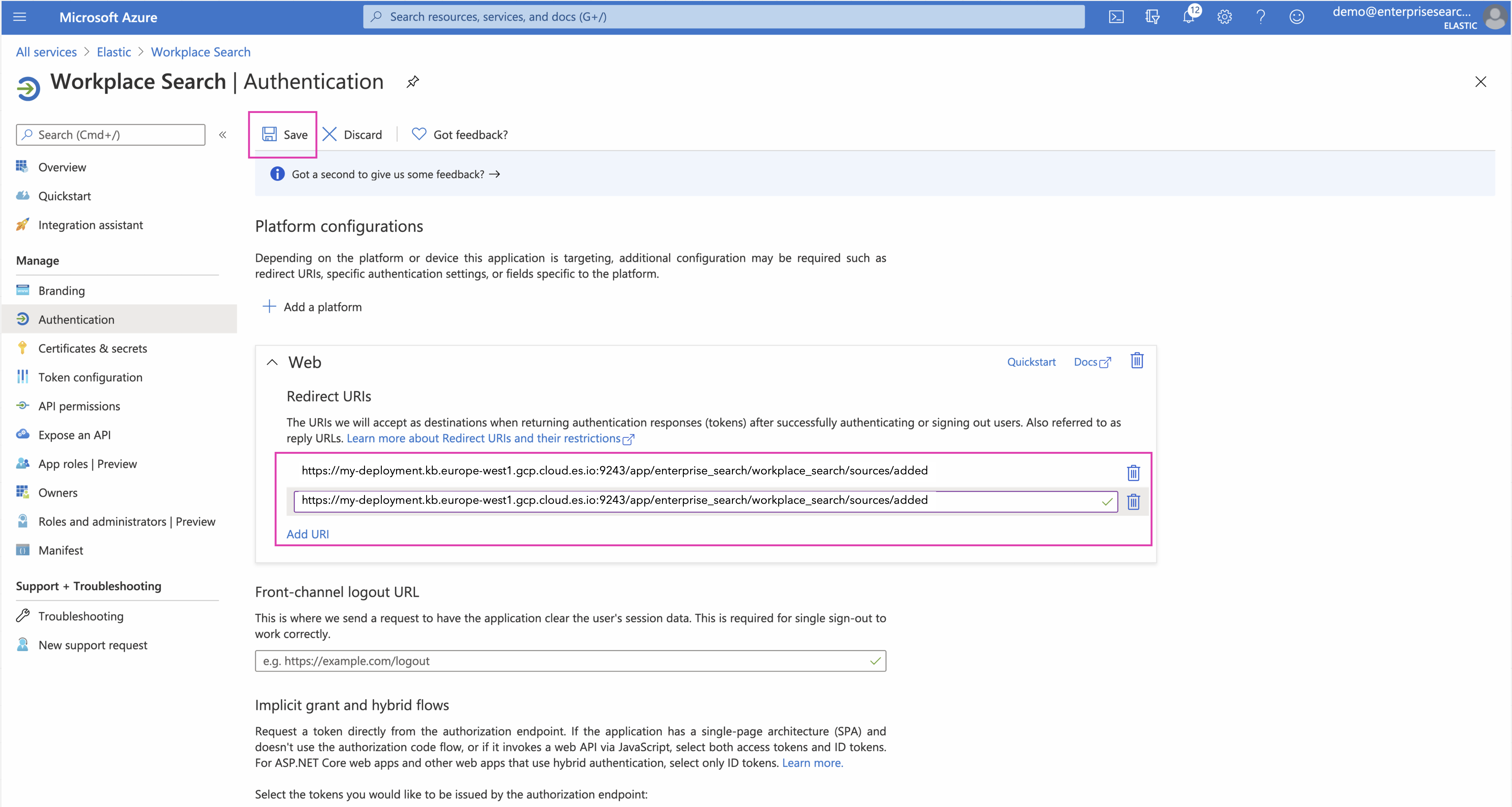 Step 7. Add the appropriate redirect URIs and Save the cofiguration.