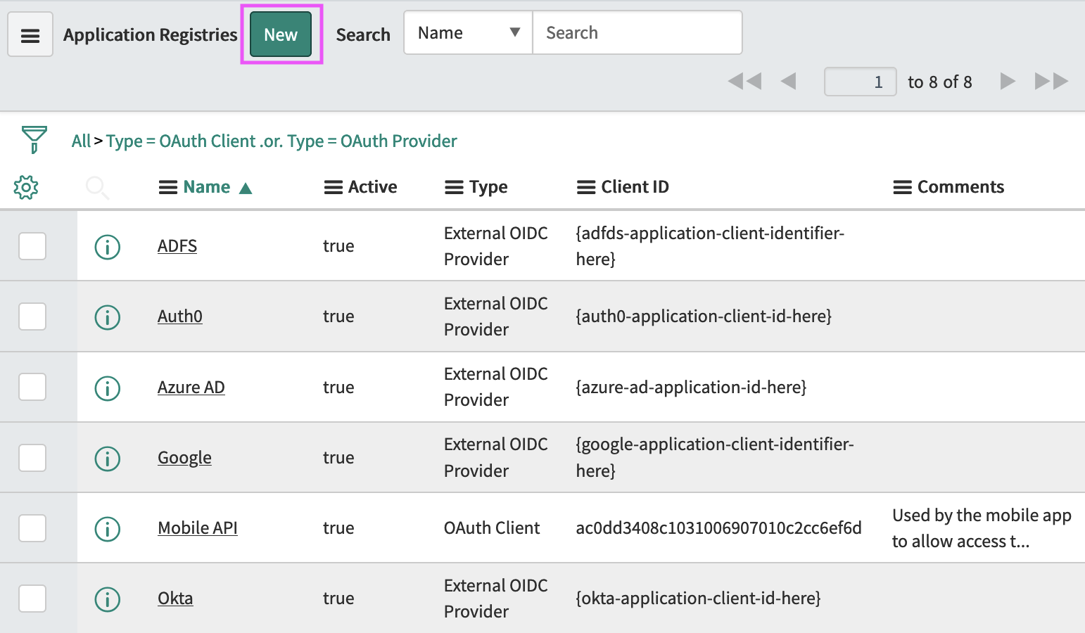 Step 2. We will need a new application. Click the New button: