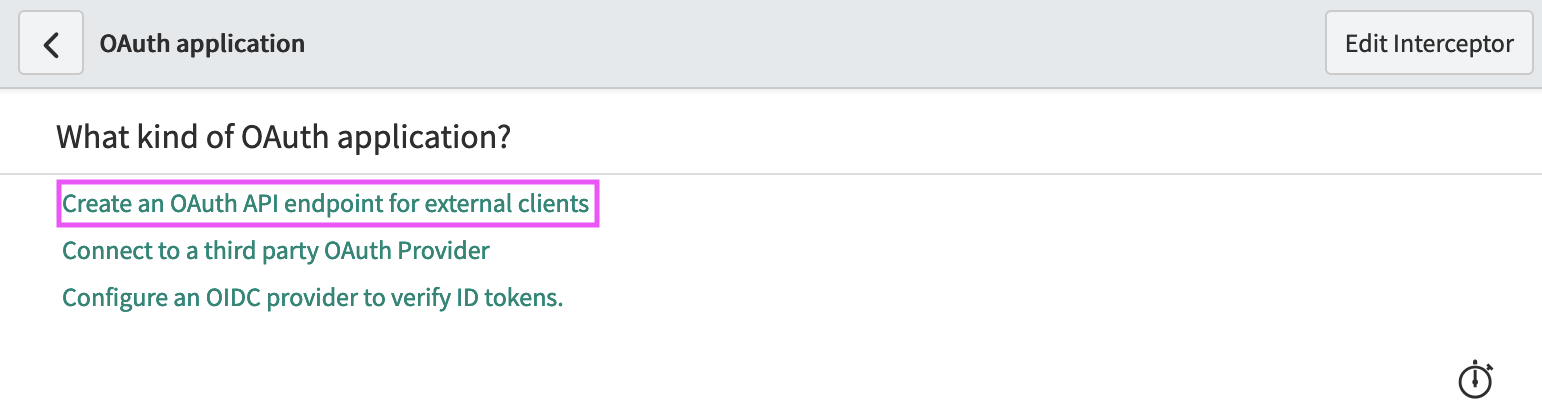 Step 3. A trio of text links appears. Select Create an OAuth API endpoint for external clients: