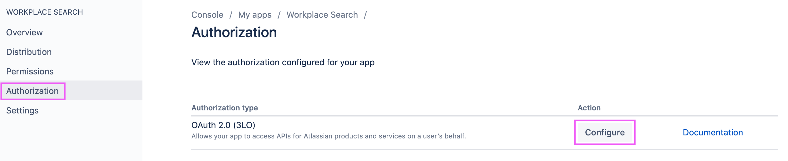 Step 5. We must now create API access and set the right permission level. In the sidebar, click Authorization, locate OAuth 2.0 (3LO), and click Configure: