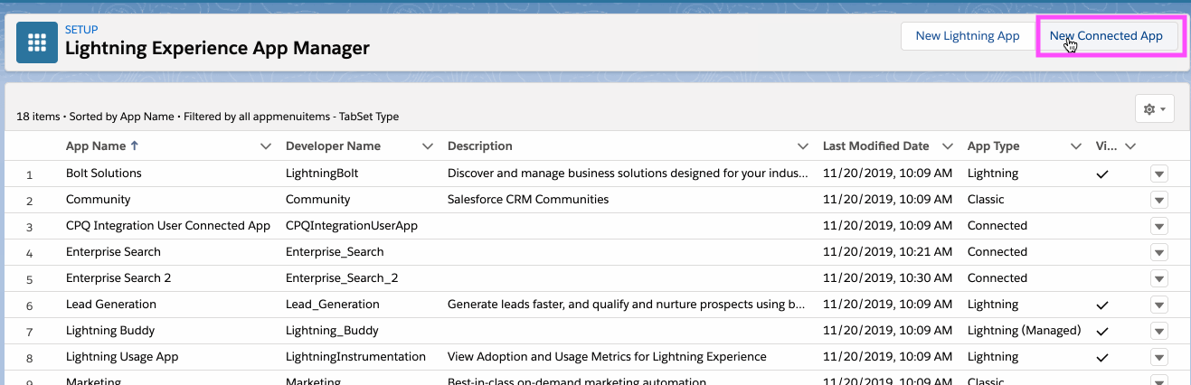 editConfiguring the Salesforce connector is the first step prior to connecting the Salesforce service to Workplace Search, and requires that you create an OAuth App from the Salesforce platform. To get started, first log in to Salesforce (or Salesforce Sandbox) and access your administrative dashboard.