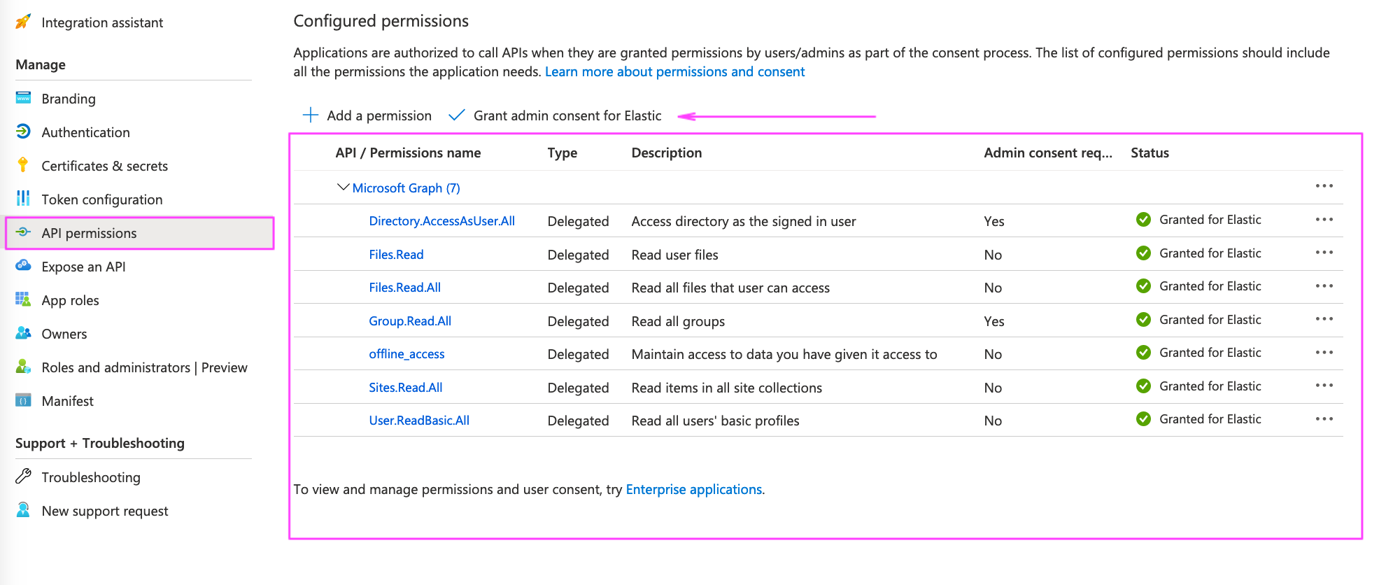 Use the Grant Admin Consent link from the permissions screen.