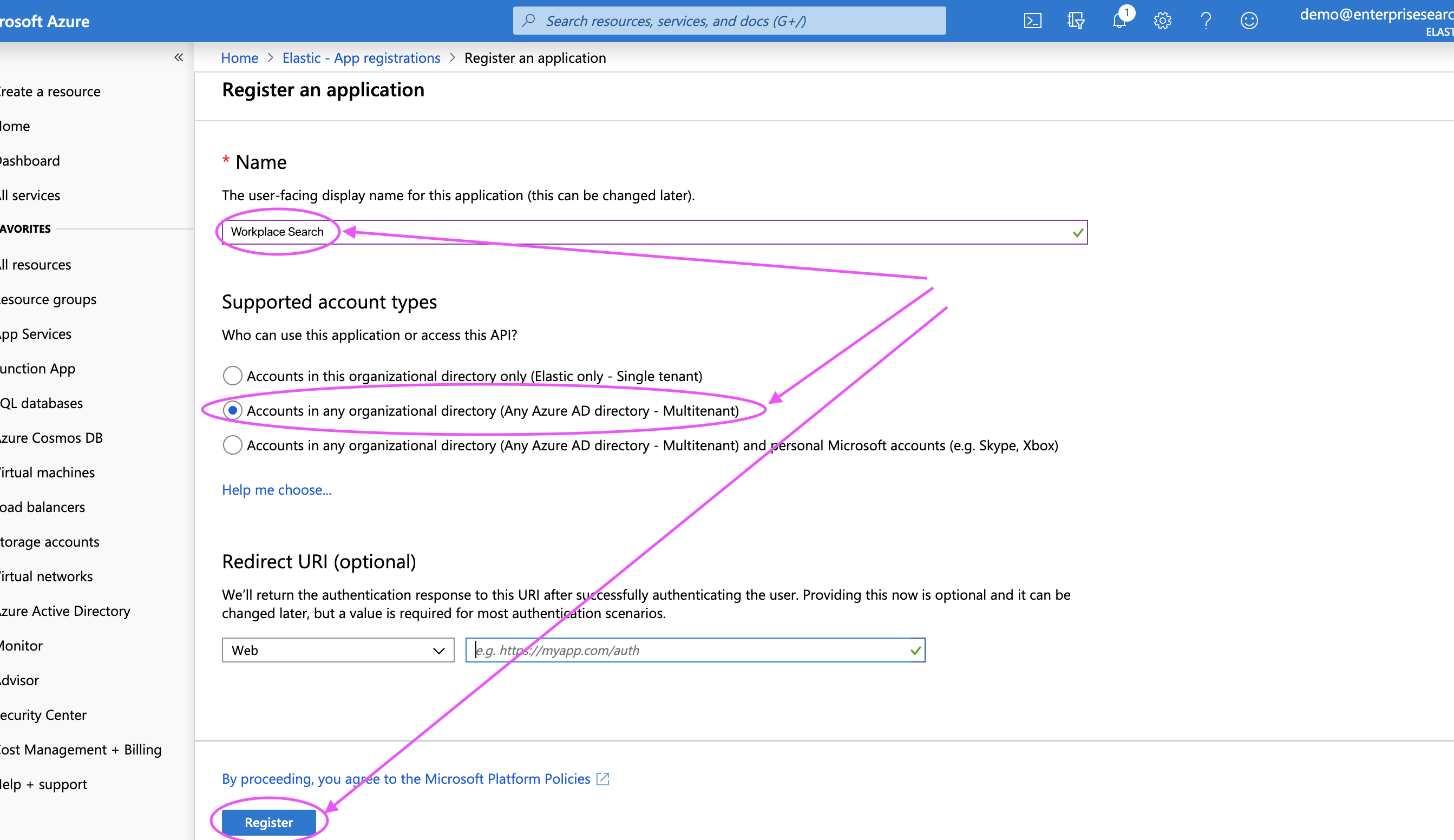Step 4. Give your app a name - like "Workplace Search" - and make it multitenant.