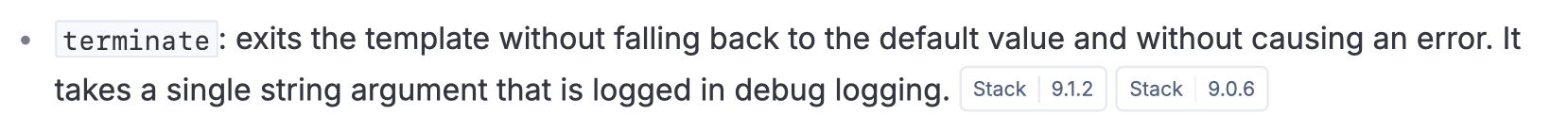 For example, on the HTTP JSON input page, the terminate helper function was added to a 9.0.x and 9.1.x patch version at the same time.