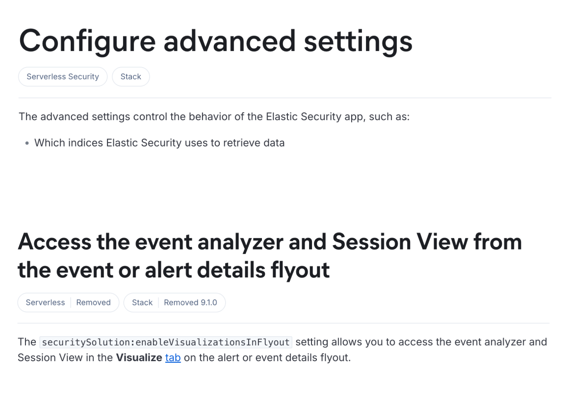 For example, we removed the securitySolution:enableVisualizationsInFlyout setting that was described on the