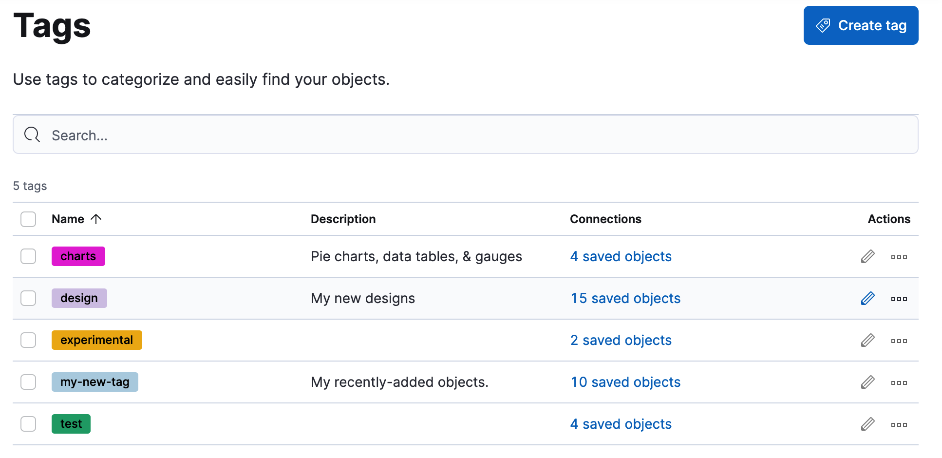 Having the Tag Management Kibana privilege is not required to view tags assigned on objects you have read access to, or to filter objects by tags from the global search.
