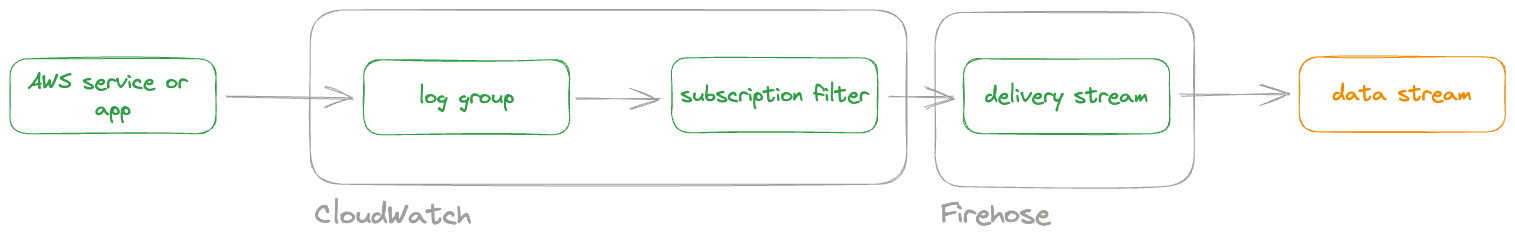 The subscription filter allows you to pick log events from the log group and forward them to other services, such as an Amazon Kinesis stream, an Amazon Data Firehose stream, or AWS Lambda.
