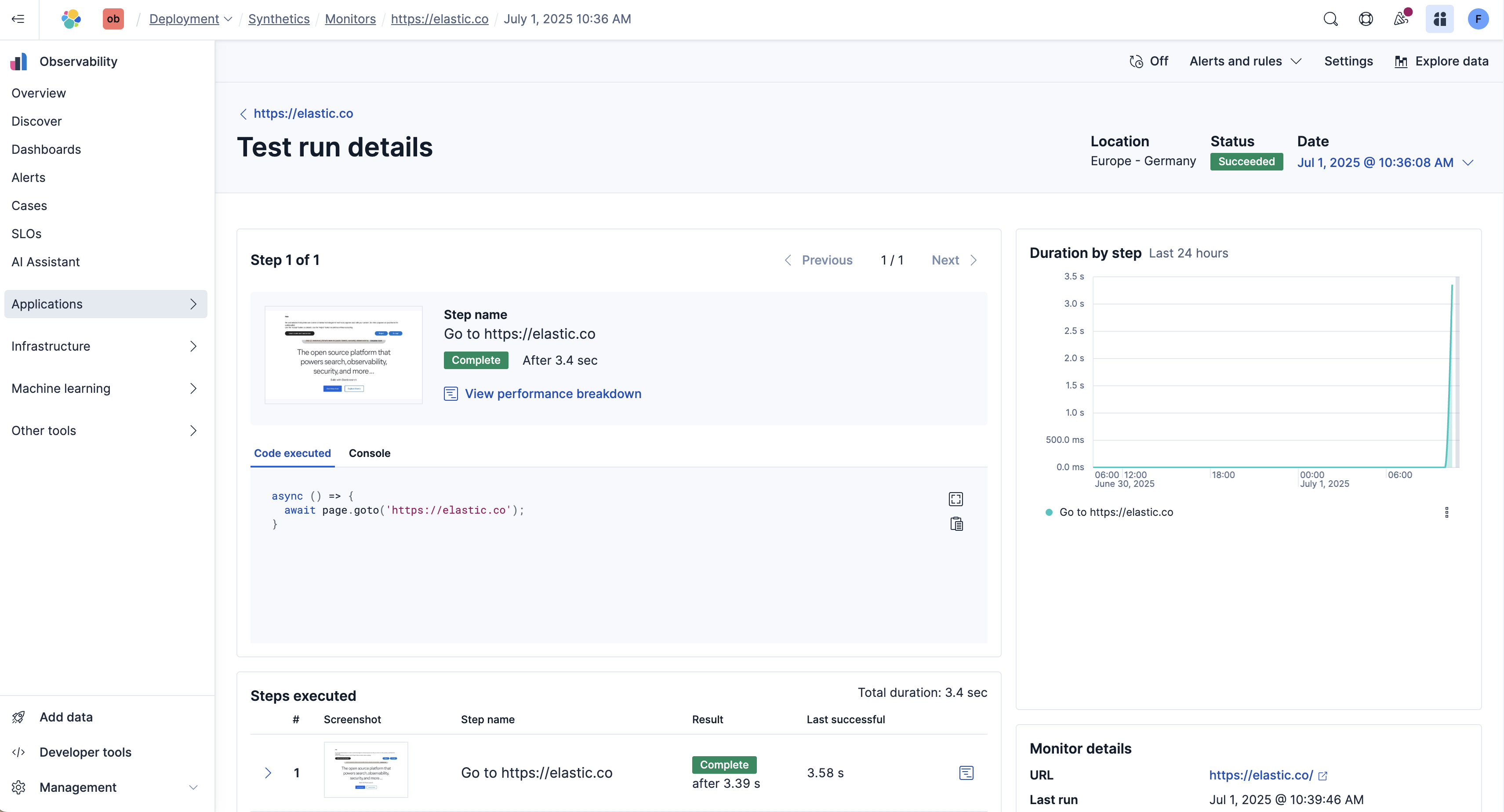 In this quickstart guide, you'll get more familiar with Elastic Observability as well as an overview on how to ingest, view, and get started with Synthetic monitoring.