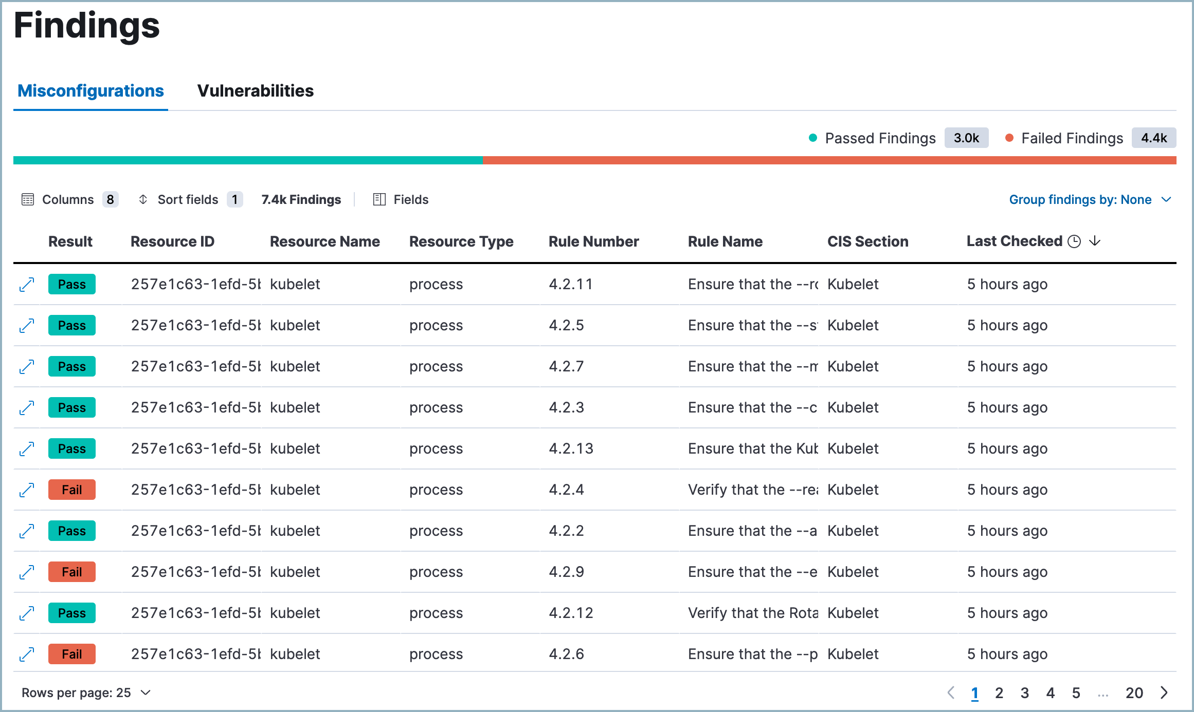 View and manage KSPM misconfigurations in Findings