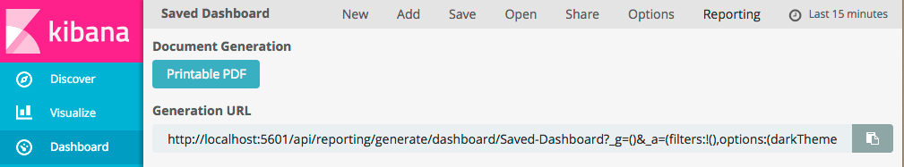 editKibanaにinstall X-Packすると、X-Pack reportingは自動的に有効になります。