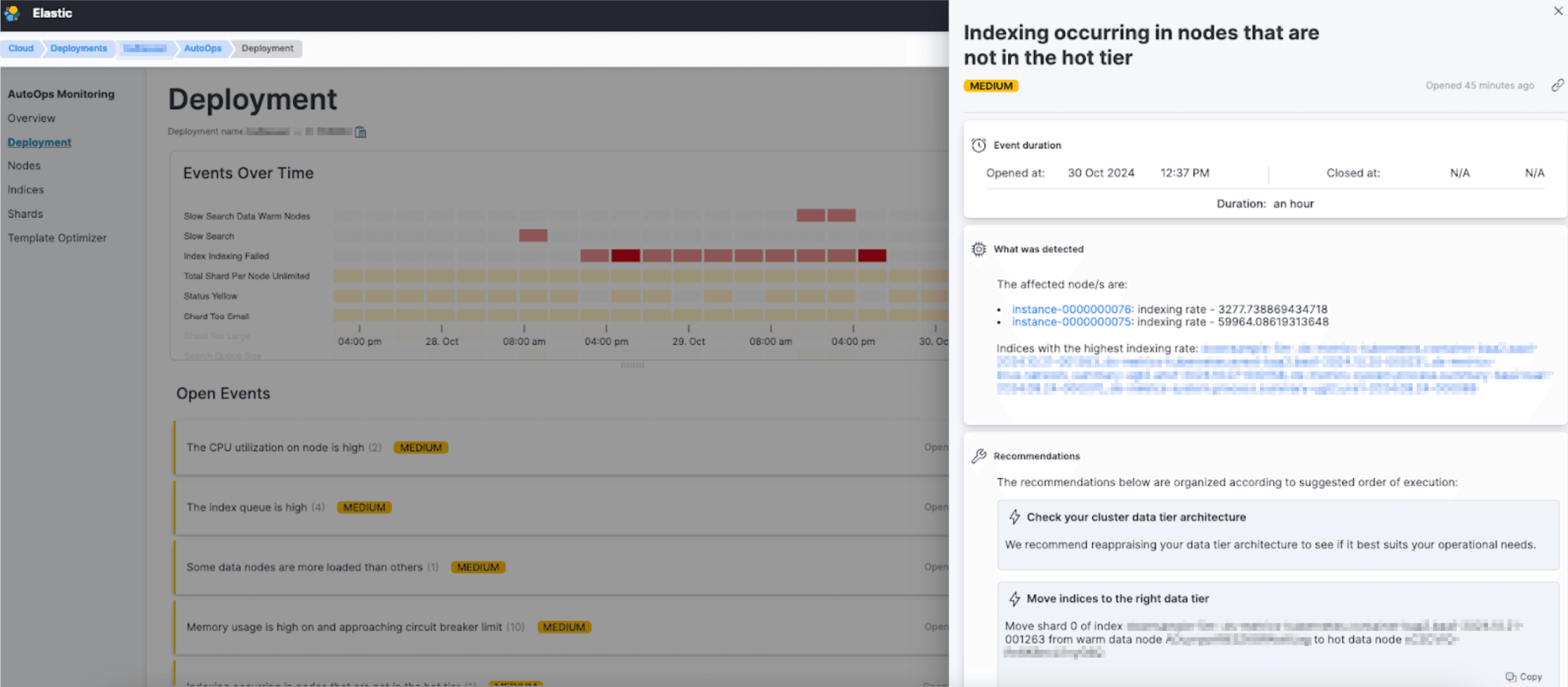 Cost visibility and optimization for Elasticsearch deployments : AutoOps identifies underutilized nodes, small or large indices and shards, and suggests data tier optimizations. This can help with better resource utilization and potential hardware cost savings.