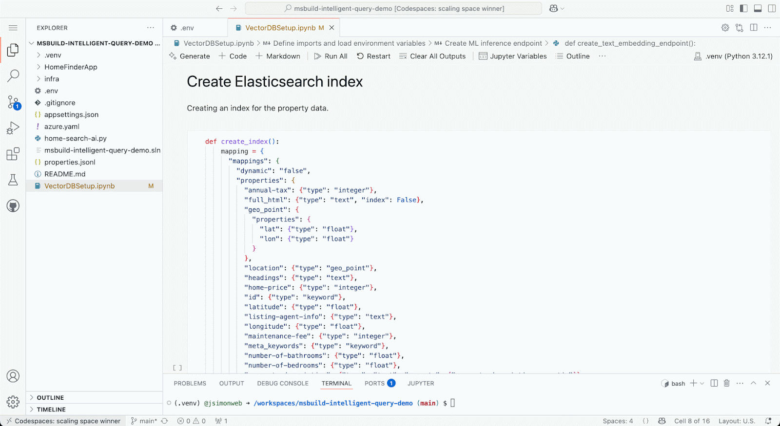 Ingest data into the Elasticsearch index using Codespaces Notebook
