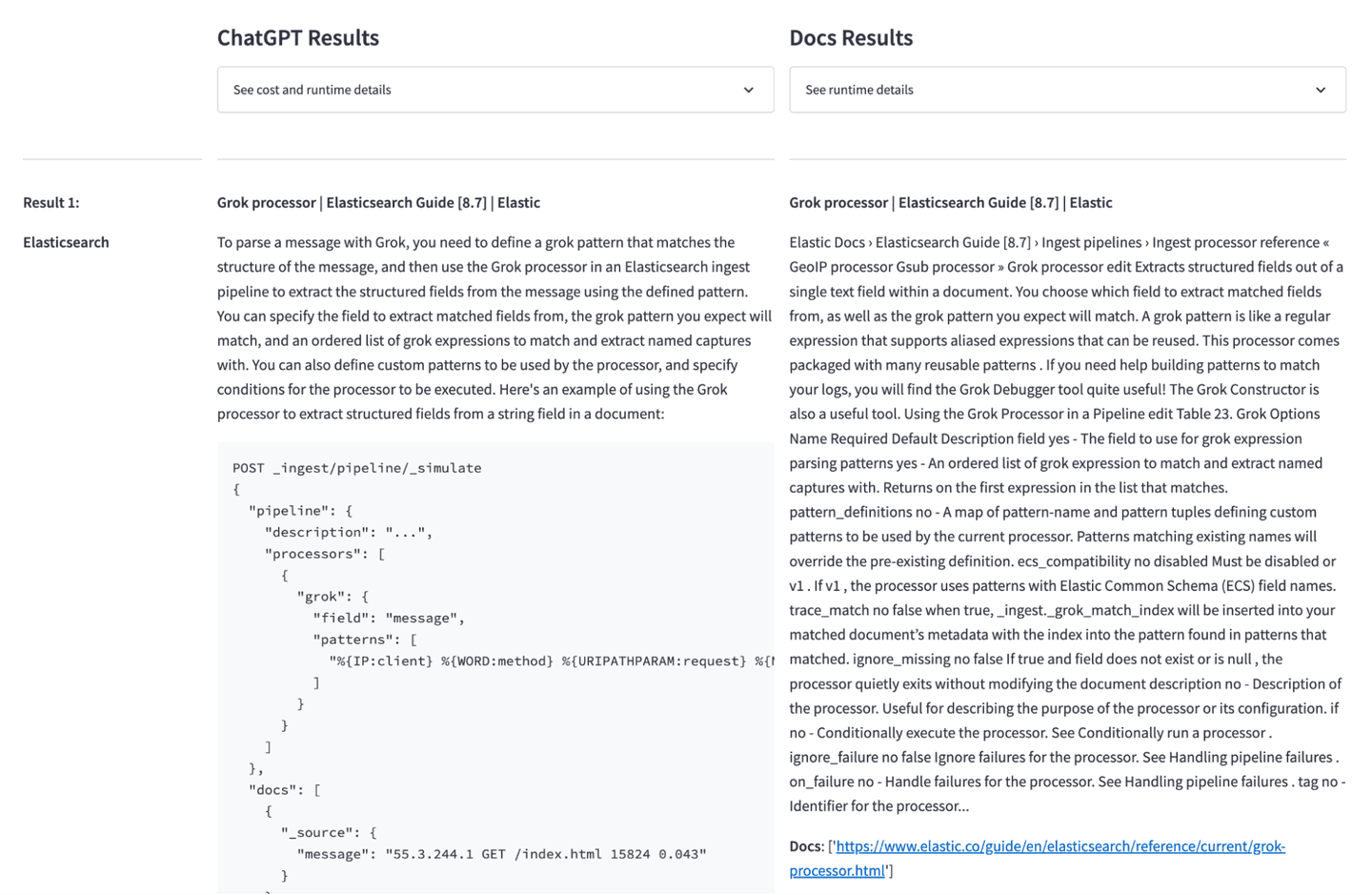 Searching for “How can I parse a message with Grok?” results in a document for ingest pipelines to be returned as the top result. This is not wrong, as ingest pipelines also support Grok expressions, but what if the user was interested in parsing his data using Logstash?