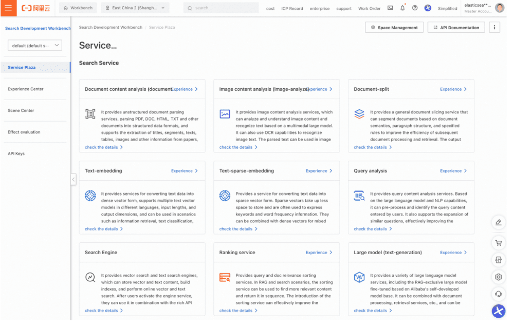 This walkthrough assumes you already have an AlibabaCloud Account with access to AlibabaCloud AI Search platform. Next, you’ll need to create a workspace and API key for Inference creation.
