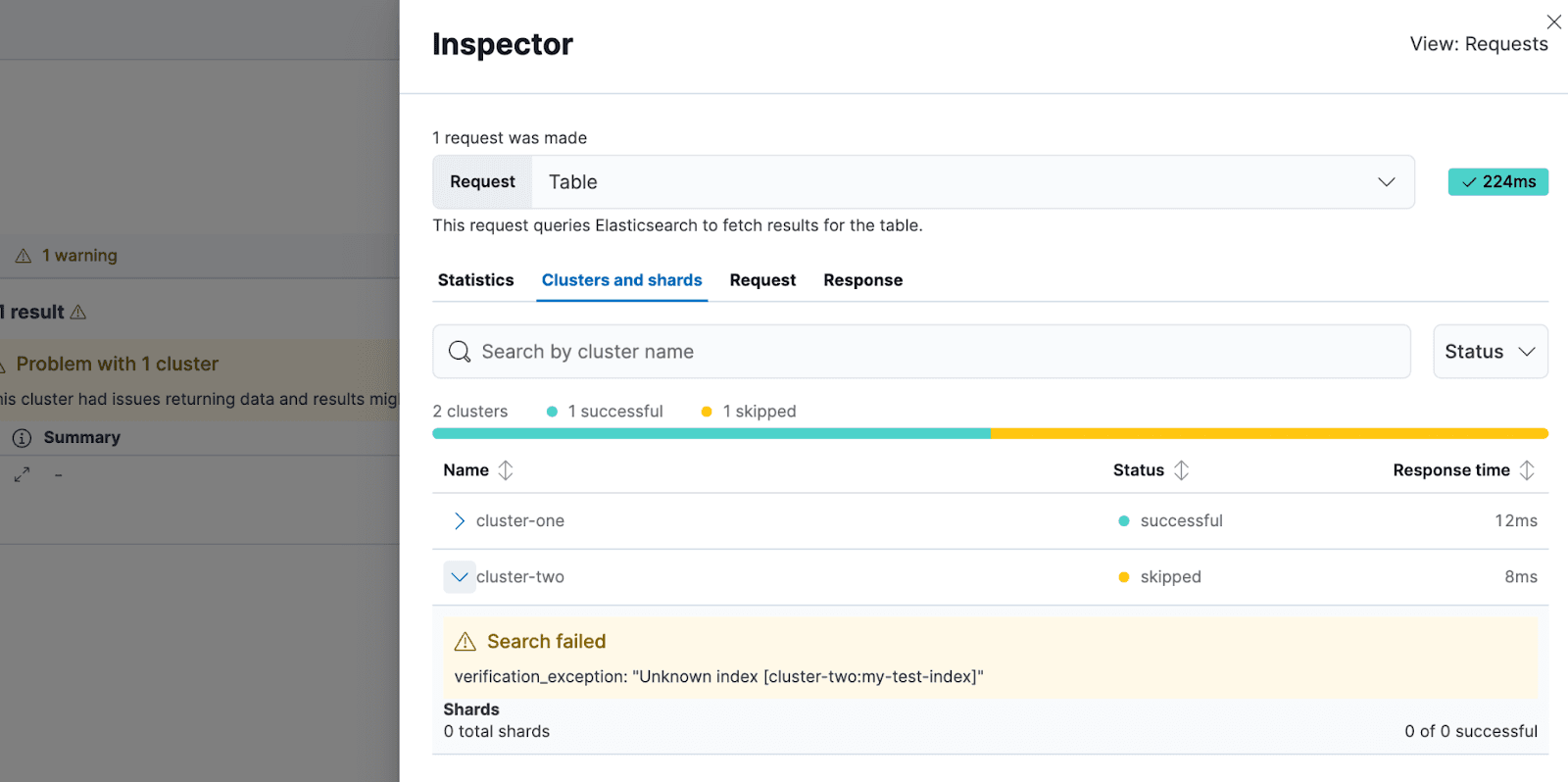 is_partialflag is set to true. - The _clusters object provides a detailed breakdown of the status of each cluster (successful, skipped, or failed), so you can programmatically identify the source of the issue.