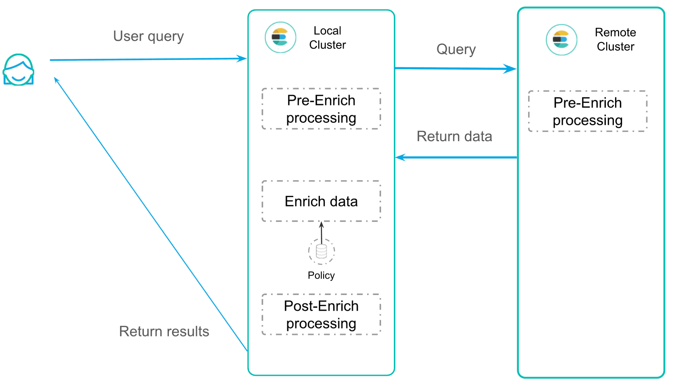 By default, the query engine would decide by itself, based on performance and query semantics, on which clusters and nodes the data merging operation would run. This requires the enrichment policies to contain the same data on all clusters, for consistency. Example: