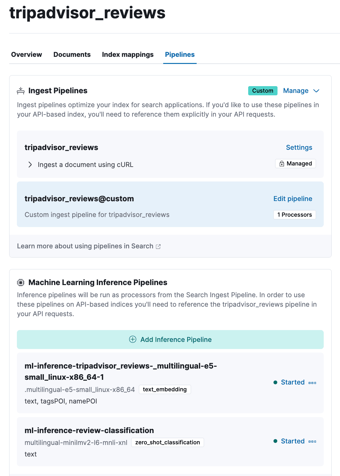 To ingest the reviews data, we will generate a custom and inference pipeline that is automatically linked to the main pipeline, which shares the same name as the index.