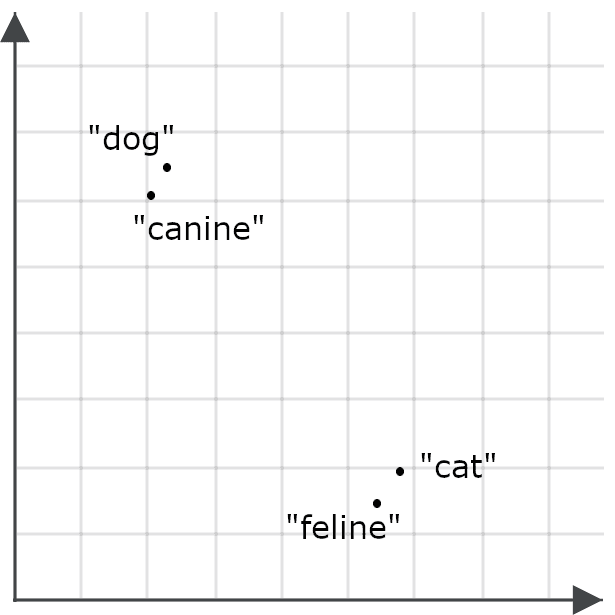 To understand how this is important for search applications, imagine one embedding for the word “dog” and one for the word “cat” as points in space: