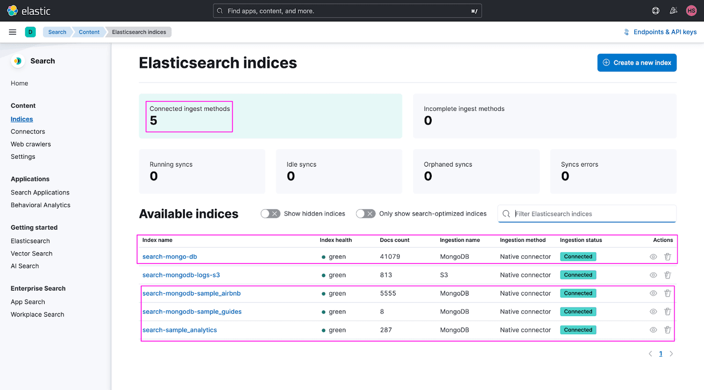 Below is a step-by-step guide on how to ingest and sync data from the MongoDB database into Elasticsearch using the Elastic MongoDB connector.