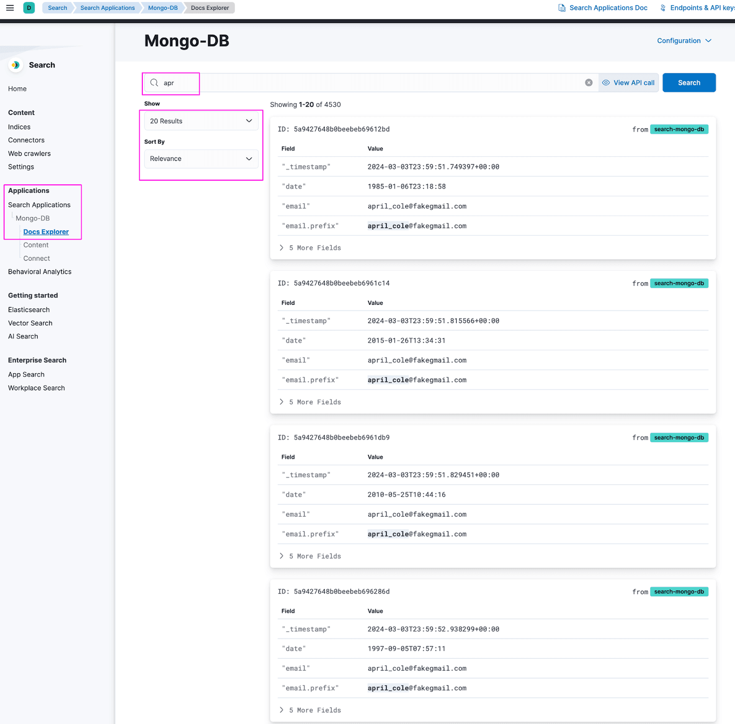 Note: Files bigger than 10MB will not be ingested and file permissions set at MongoDB level are not synced as is into the Elastic Deployment.