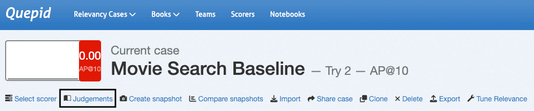 Once judgement lists are available, leveraging the judgements and calculating search quality metrics is a natural progression. Quepid automatically calculates the configured metric for the current case when judgements are available. Metrics are implemented as “Scorers” and you can provide your own when the supported ones do not include your favorite!