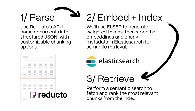Demonstrating how Reducto's document processing can be integrated with Elasticsearch for semantic search.